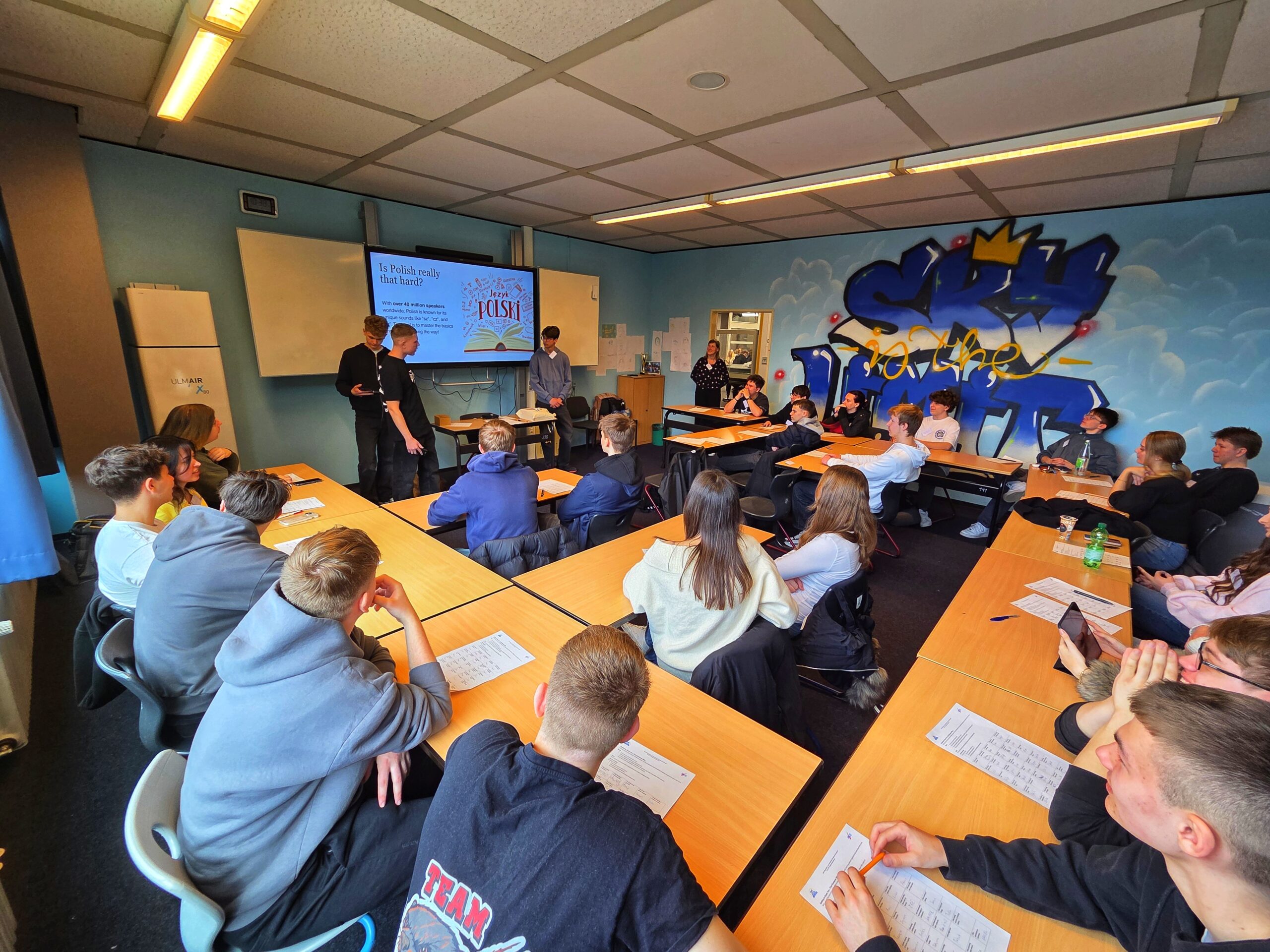 19.04.2026. Die letzte Woche stand ganz im Zeichen von Austausch, Teamwork und neuen Perspektiven. Eine Schülergruppe unserer Partnerschule aus Krakau war für die gemeinsame Projektwoche "Sustainable Cities & the SDGs: Working Together For A Better Future!" bei uns. Ob beim ersten Kennenlernen mit kleinen Gesprächen, beim gemeinsamen Erkunden der Stadt oder beim Tüfteln an nachhaltigen Ideen – alleine ging hier gar nichts. In internationalen Gruppen wurde diskutiert, gelacht, gestaltet und präsentiert. Vom Brainstorming über die SDGs bis hin zur eigenen „Stadt der Zukunft“: Alles entstand im Miteinander, mit vielen spannenden Gesprächen und vermutlich genauso vielen unterschiedlichen Meinungen. Und ganz nebenbei: Ein gemeinsames Video wächst auch – Erinnerungen inklusive. - Fazit: Wenn Lernen so aussieht, darf es gern öfter Projektwoche sein!