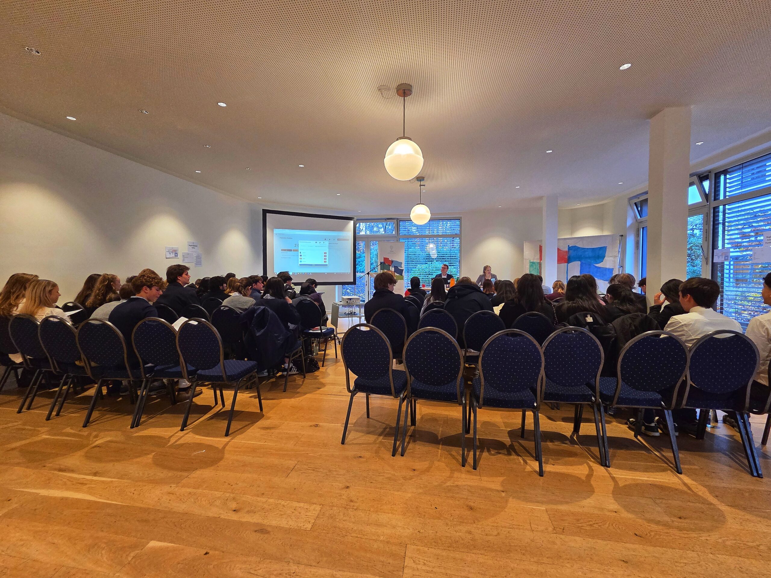 Zwischen Krisen und Kompromissen – Unsere Schülerinnen und Schüler auf der SVeN im Haus Rissen. Am 20. und 21. November war es wieder so weit: Ein Team von engagierten Schülerinnen und Schülern unserer Schule nahm unter Begleitung unserer Lehrkräfte Maximillian von Holten und Michael Schmitt erneut an der SVeN – Simulation der Vereinten Nationen im Haus Rissen in Hamburg teil. Für viele war es nicht nur ein Planspiel, sondern eine Reise in neue politische Welten – mit hitzigen Debatten, unerwarteten Allianzen und einer ordentlichen Portion Emotion.